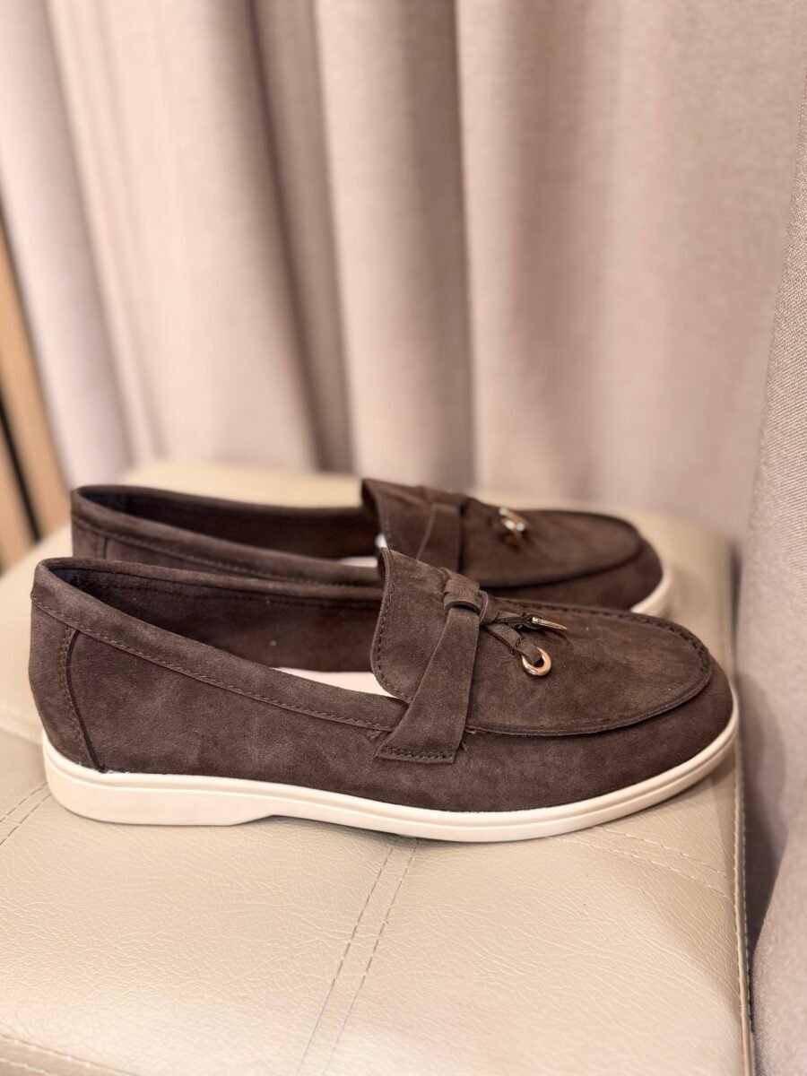 Rudos spalvos mokasinai iš natūralios zomšos odos