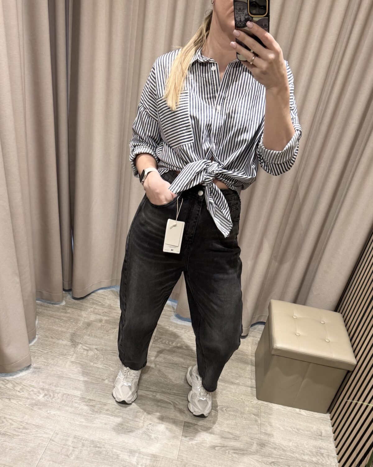 Pilki „balloon“ stiliaus džinsai – patogumui ir stiliui