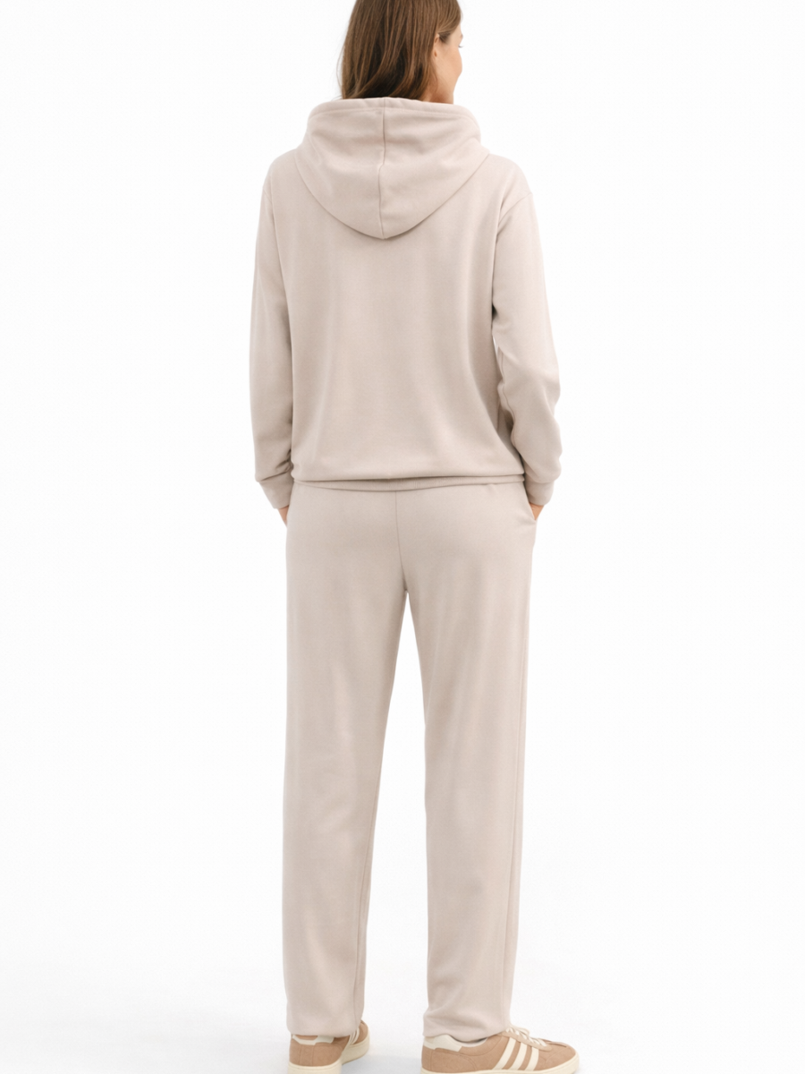 Patogus, švaraus silueto kostiumas kasdienai – tinkamas tiek laisvalaikiui, tiek aktyvesnei dienai mieste. Audinys lengvas, be pūkelio, malonus kūnui ir tinkamas pereinamiesiems sezonams.