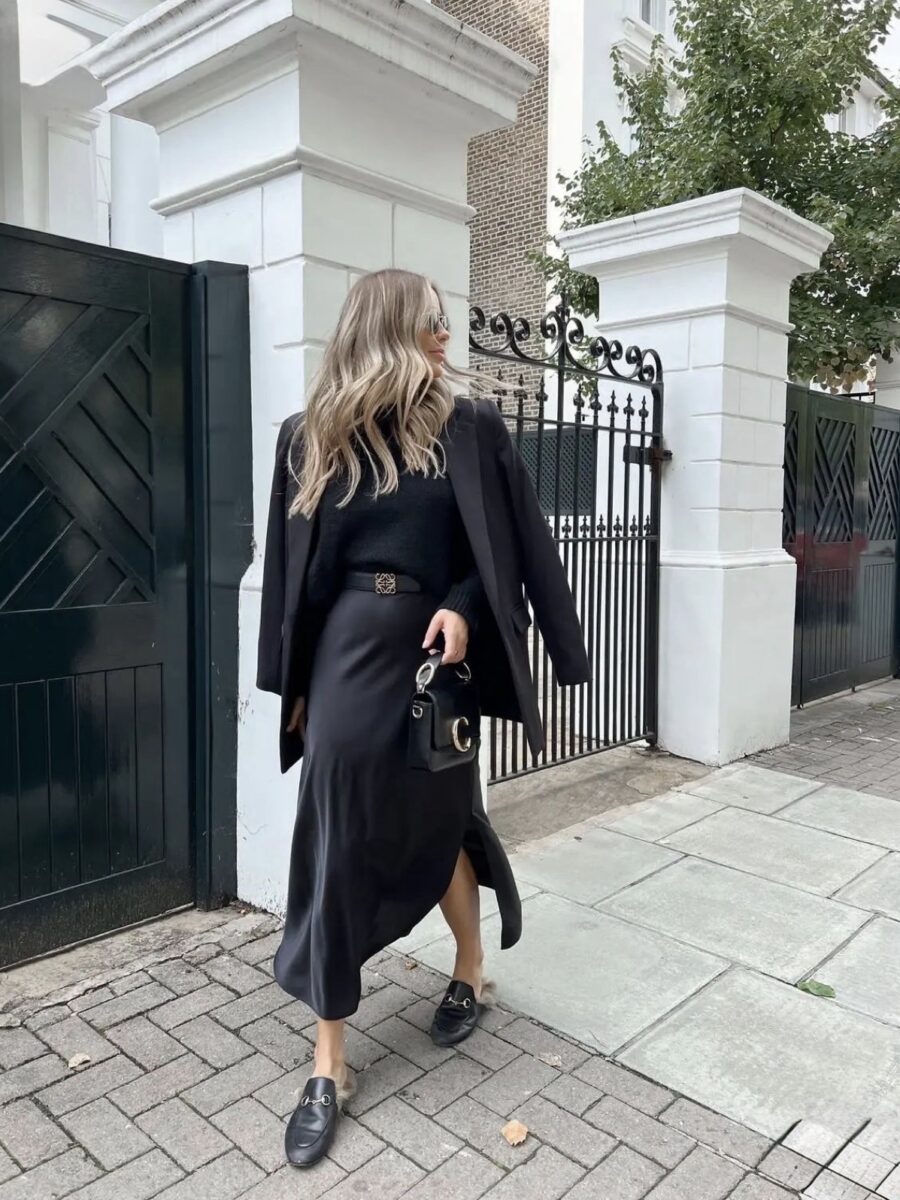Juodas satino sijonas