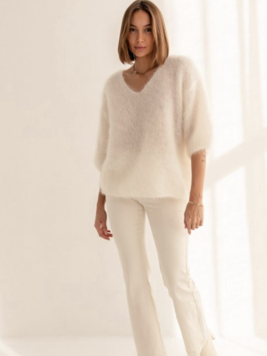Prabangus moheros megztinis „Maxwell“ – moteriškas megztinis (ecru)