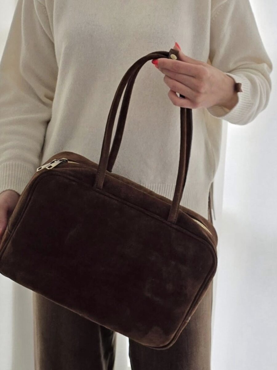 Elegantiška odinė rankinė – moteriška delninė / per petį (tamsiai ruda oda)