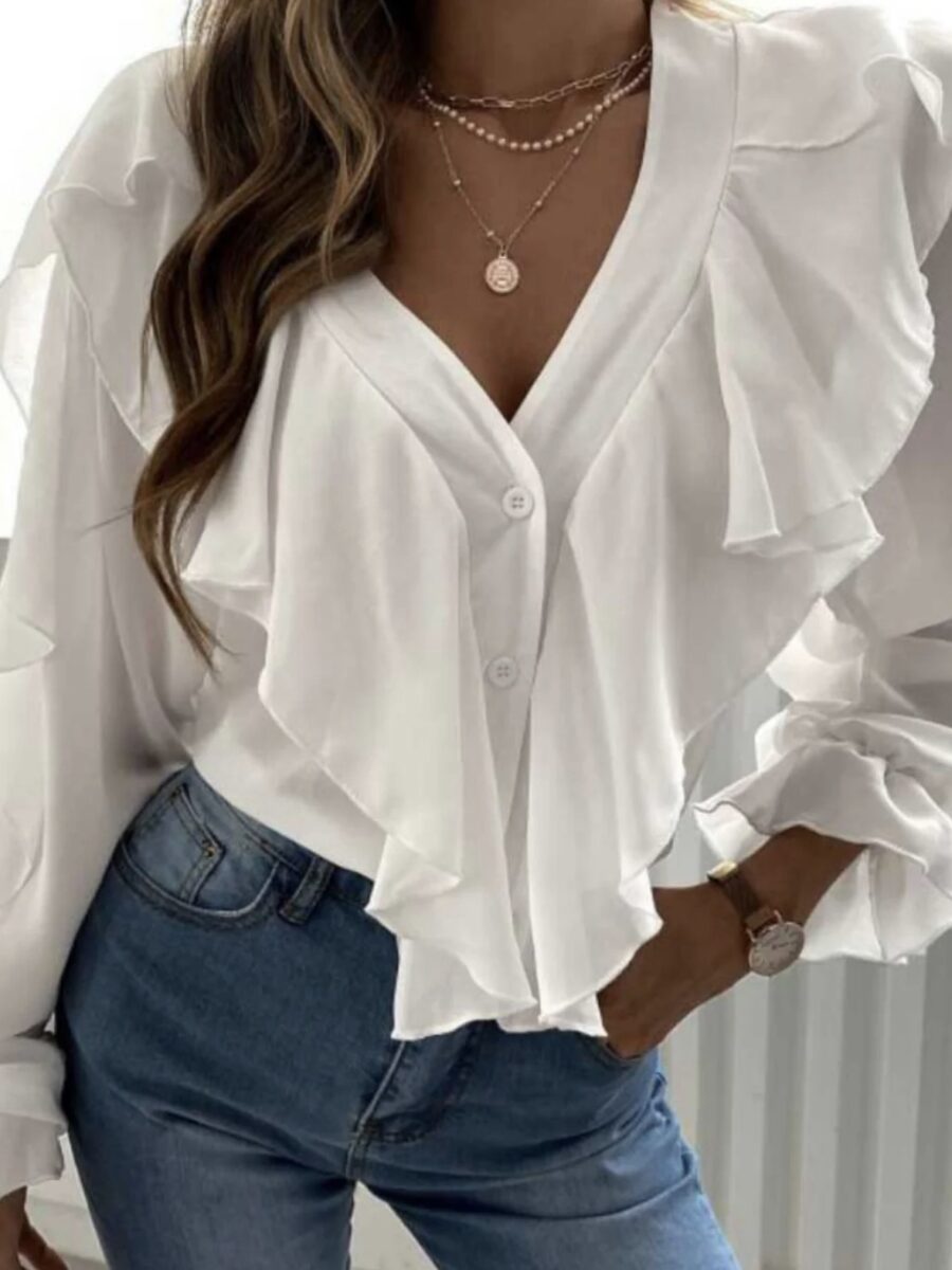Šventiniai marškinukai su raukiniais – elegantiškas modelis – balta